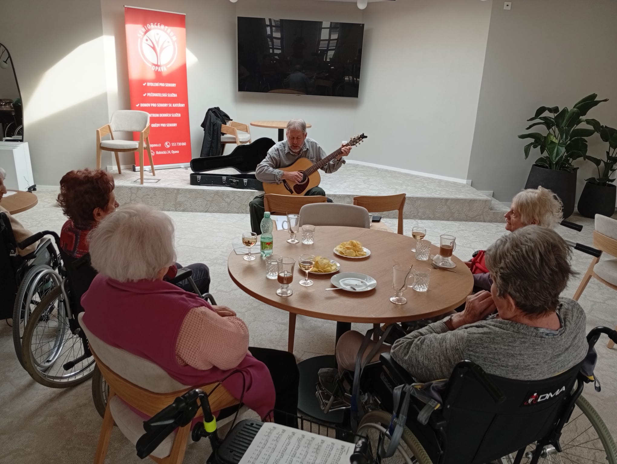 Slavnostní chvíle podtrhl Michal Jedlička, ředitel SCO, který přišel jubilantům osobně poblahopřát a popřát jim pevné zdraví a spokojenost do dalších let. O hudební doprovod se postaral Jaroslav Černý, který na kytaru zahrál známé lidové písně. Díky nim si klienti mohli zavzpomínat na svá mladá léta, zazpívat si a společně si užít radostné chvíle plné hudby a dobré nálady.