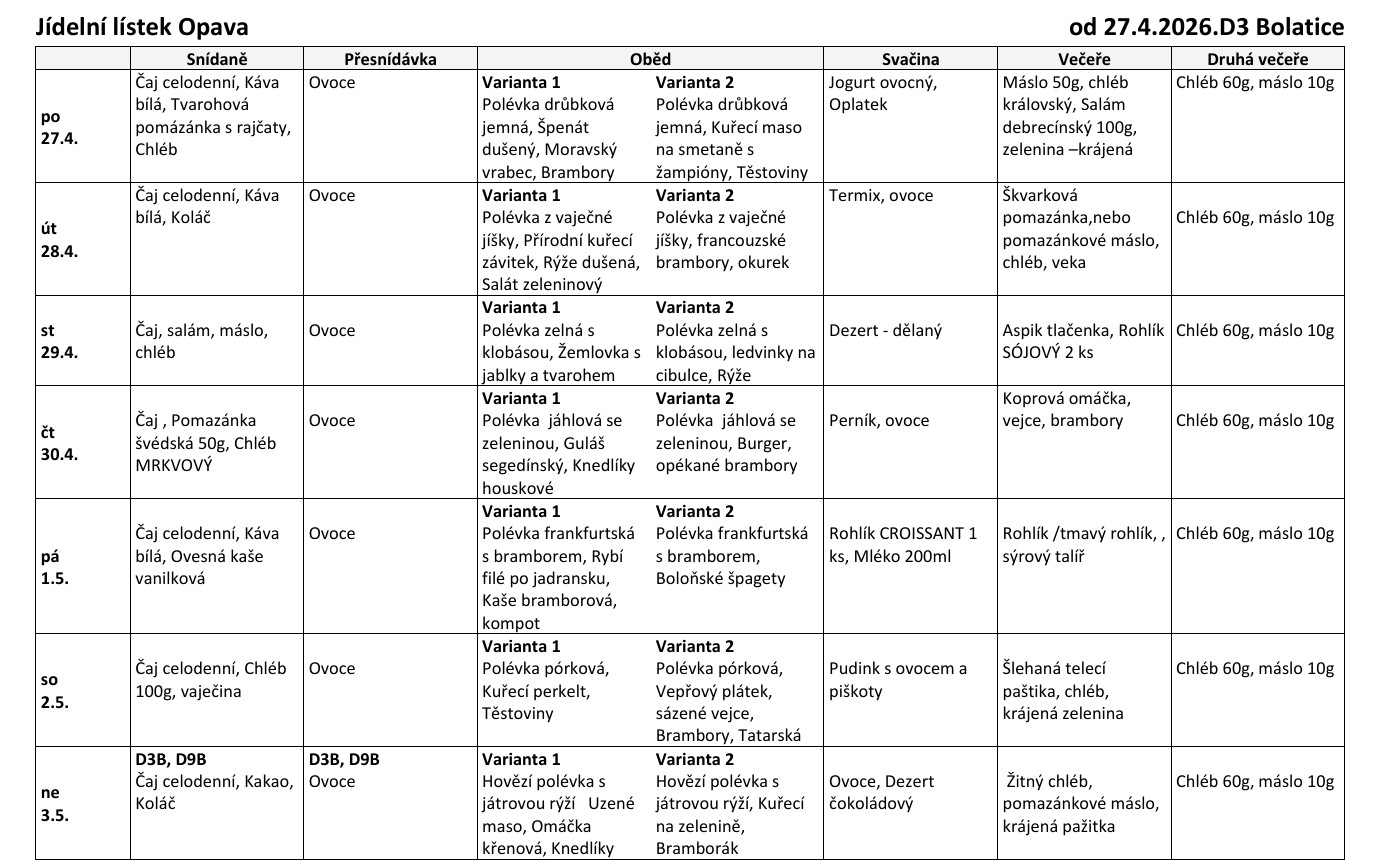 Co chutného vám kuchyně Seniorcentra Opava příští týden chystá?