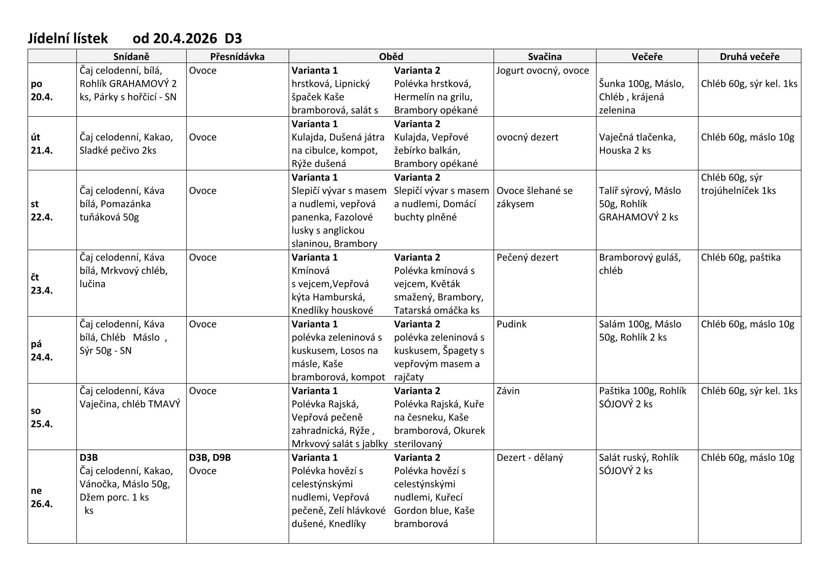 Co chutného Vám tento týden kuchyně Seniorcentra Opava přichystá?