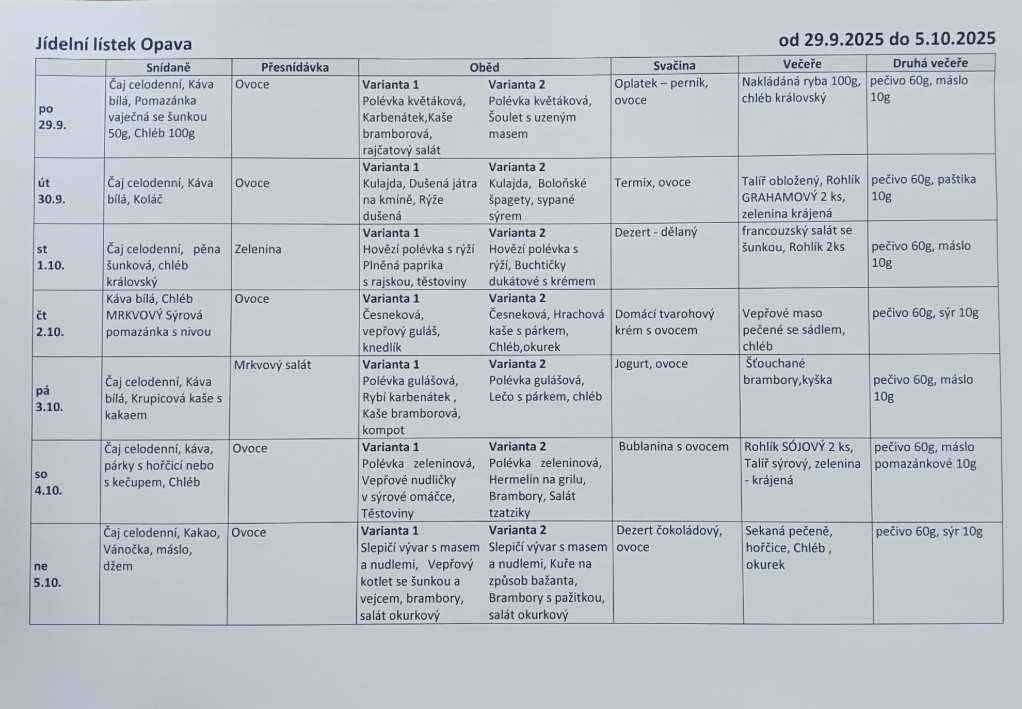 Jídelníček 29.9. až 5.10.