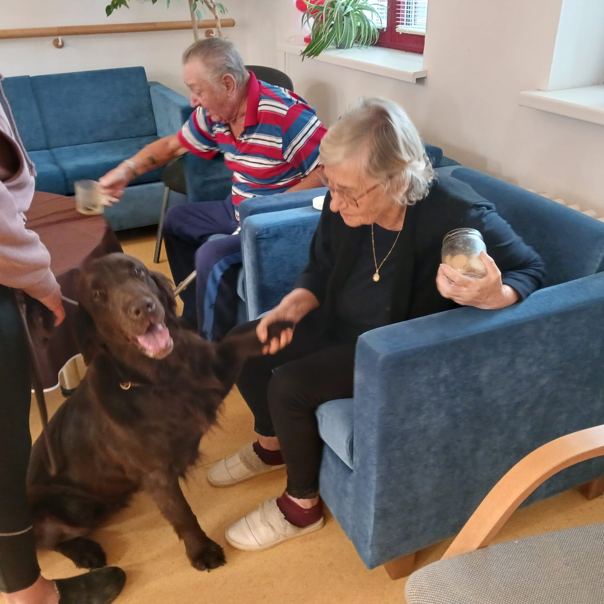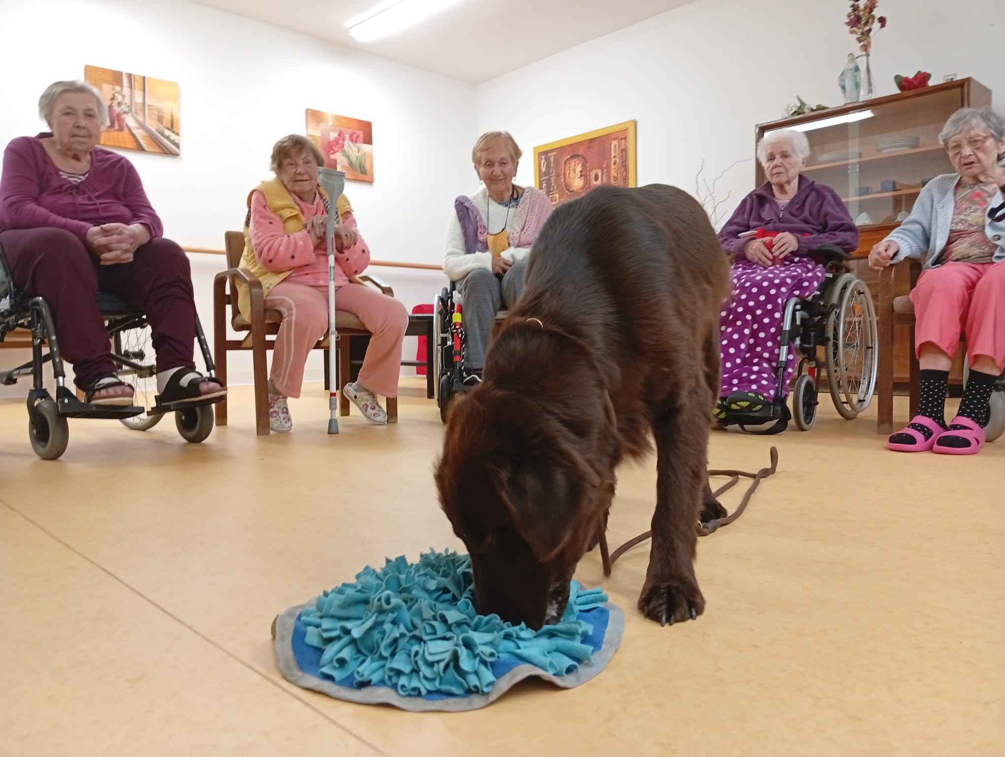 Senioři měli možnost se s ní pomazlit, házet jí hračky a vyzkoušet jednoduché povely. I ti, kteří se zpočátku ostýchali, nakonec našli odvahu Mimmi pohladit – a právě tyto malé krůčky jsou důležitou součástí terapeutického procesu.