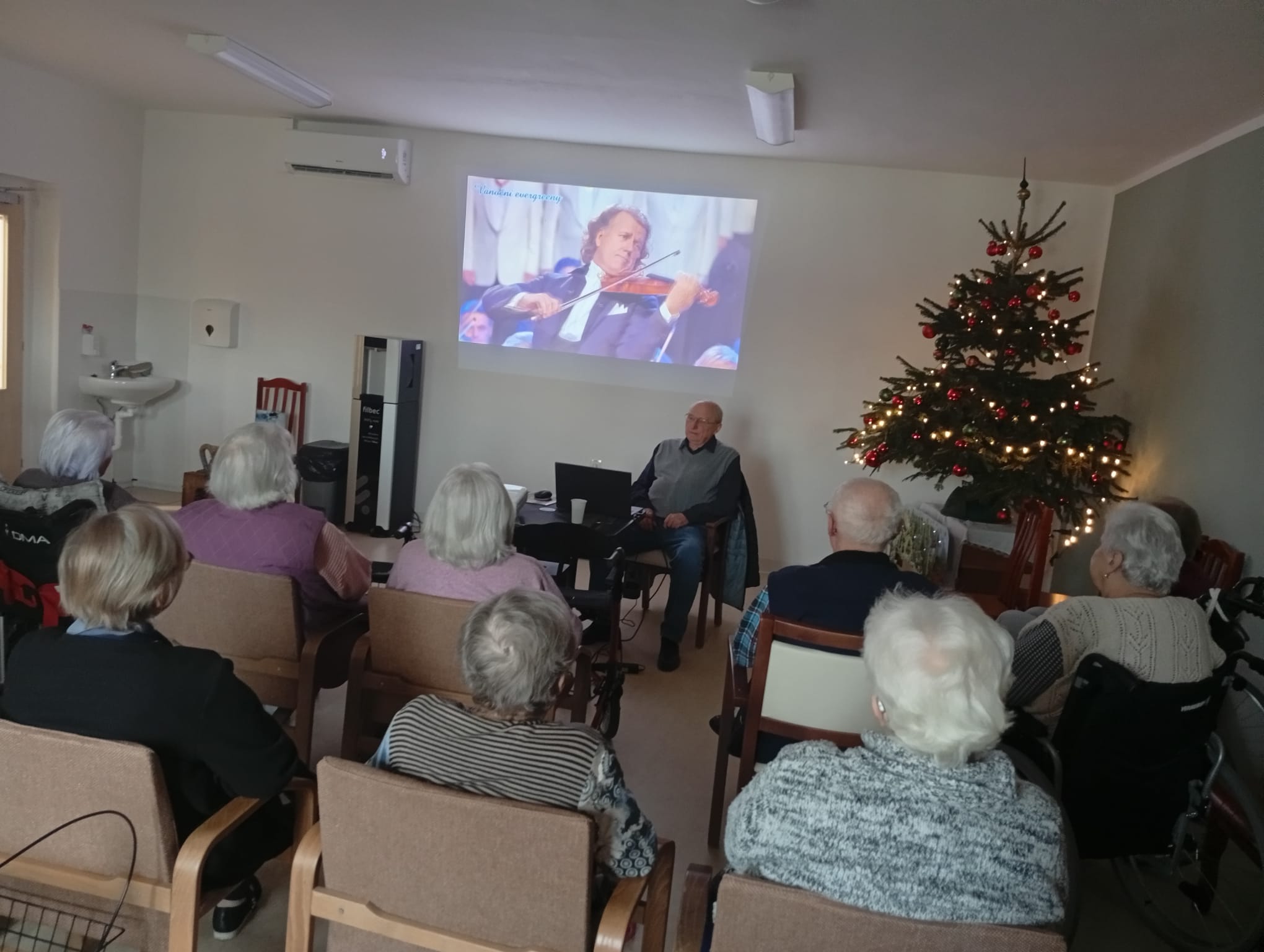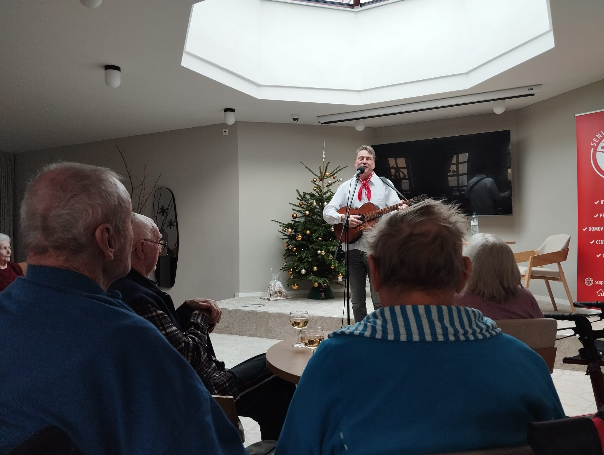 Hudba provázela naše klienty téměř na každém kroku. Adventní čas zahájilo v neděli 7. prosince vystoupení Dominika Fajkuse, který pro klienty Domova sv. Kateřiny a #SCO připravil pásmo vánočních melodií a nestárnoucích evergreenů. Nostalgickou atmosféru do sálu našeho Seniorcentra Opava vnesl také pan Vladimír Pecháček, jehož repertoár zahrnoval staropražské písně, hity Karla Hašlera i známé melodie z filmů pro pamětníky.