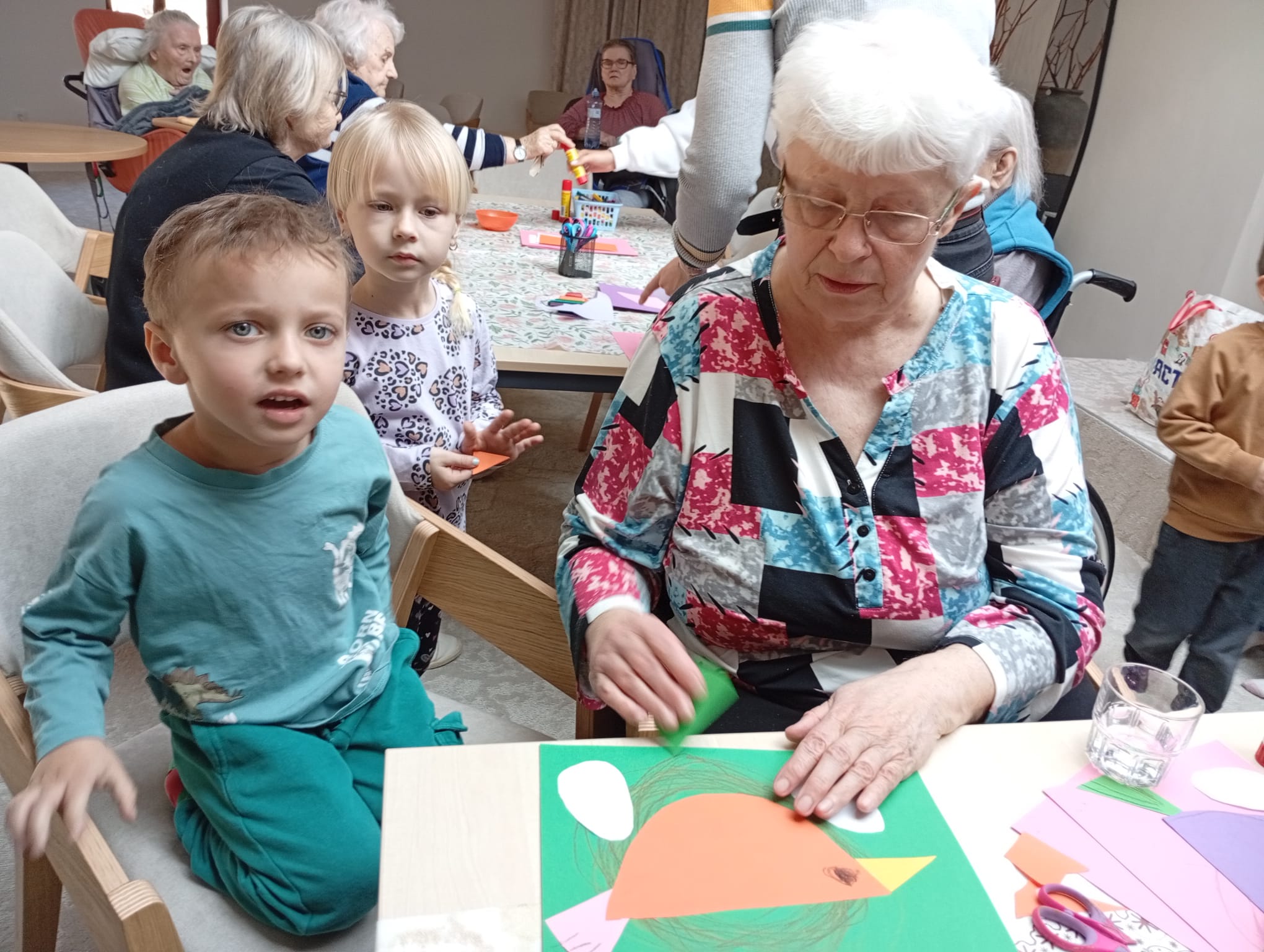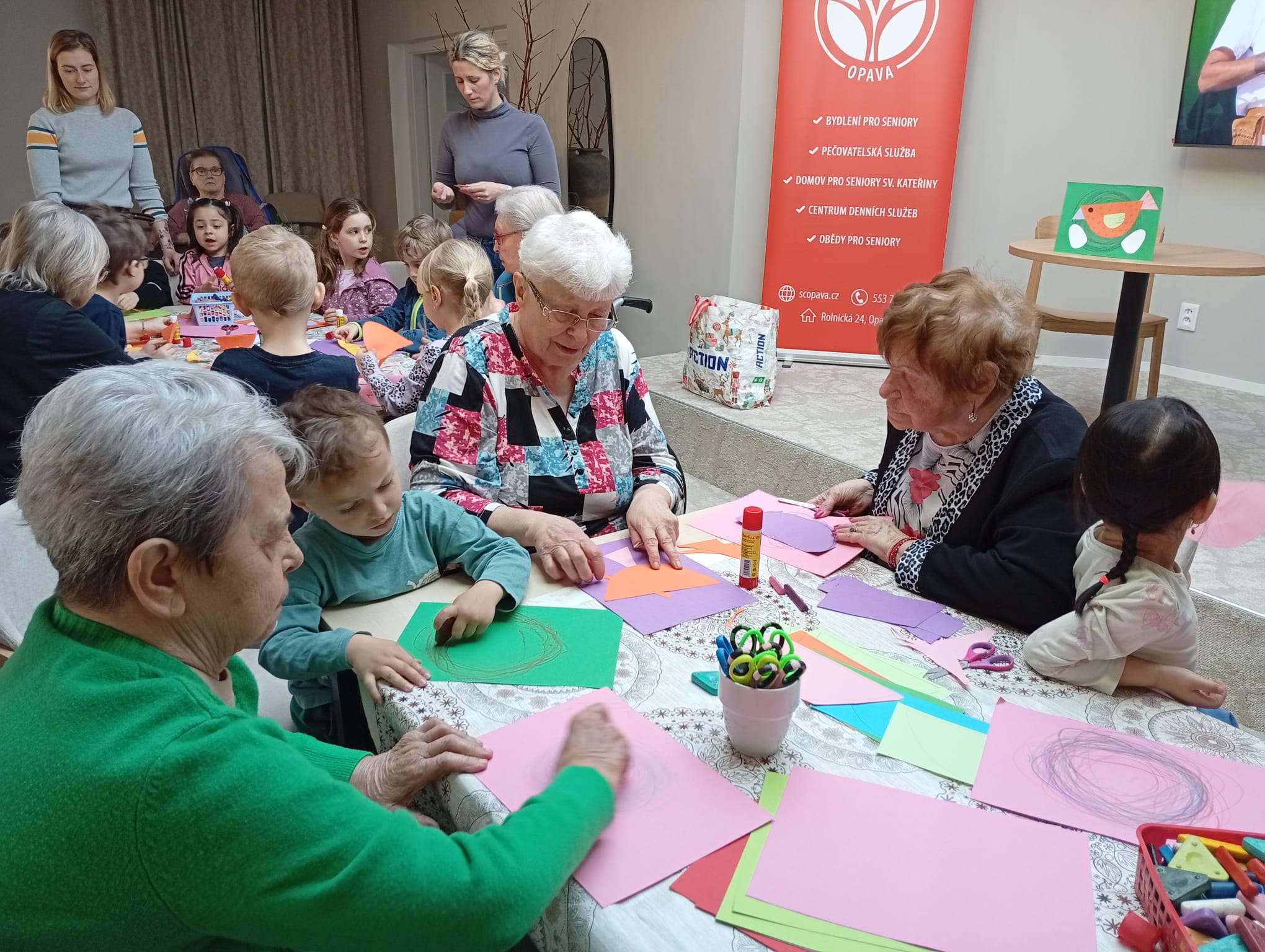 Ve čtvrtek se v sále SCO uskutečnilo milé mezigenerační setkání, které propojilo klienty našeho Domova sv. Kateřiny s dětmi z MŠ Šrámkova. Akce se nesla v přátelské a uvolněné atmosféře a přinesla radost dětem i našim klientům.