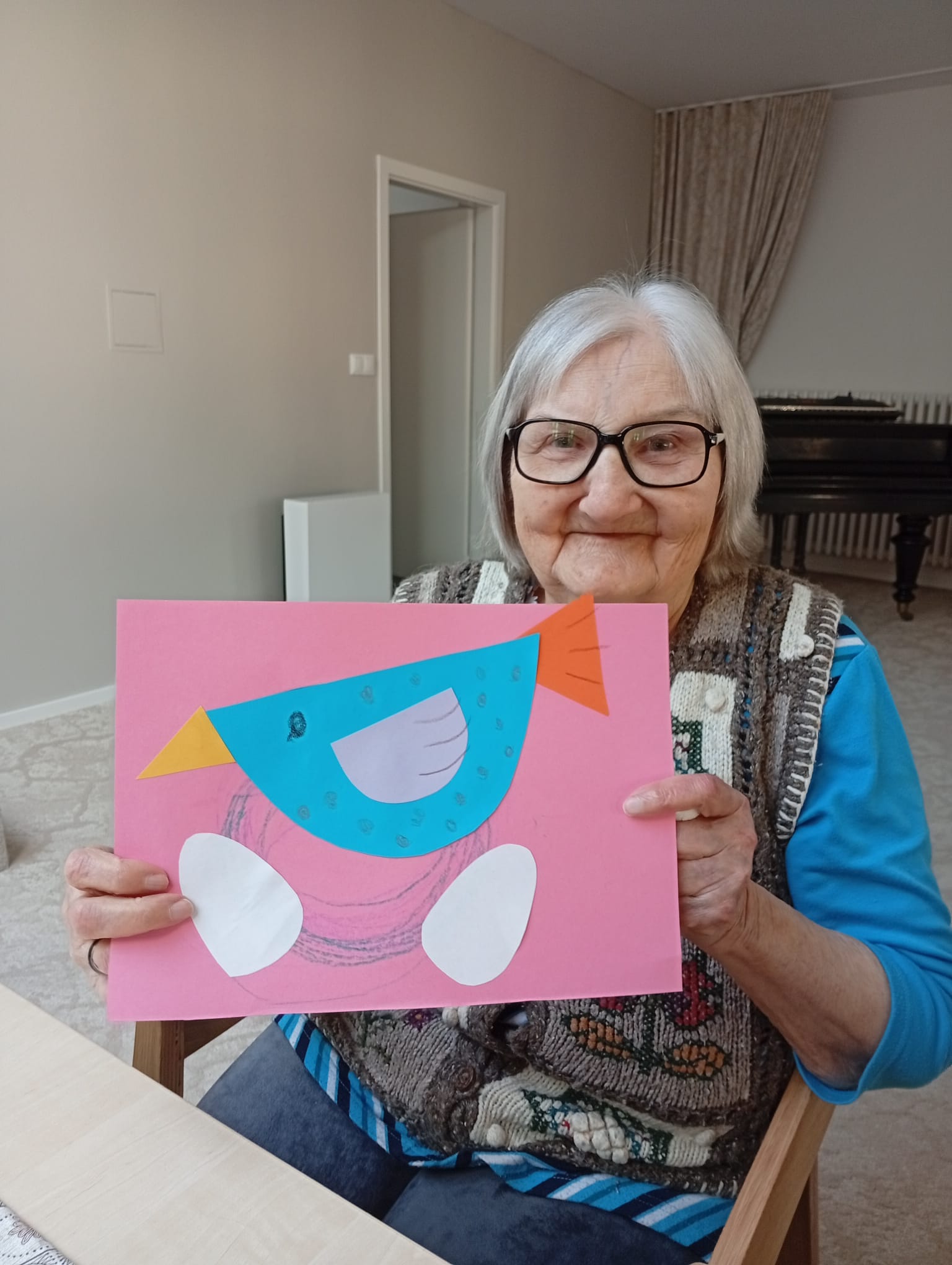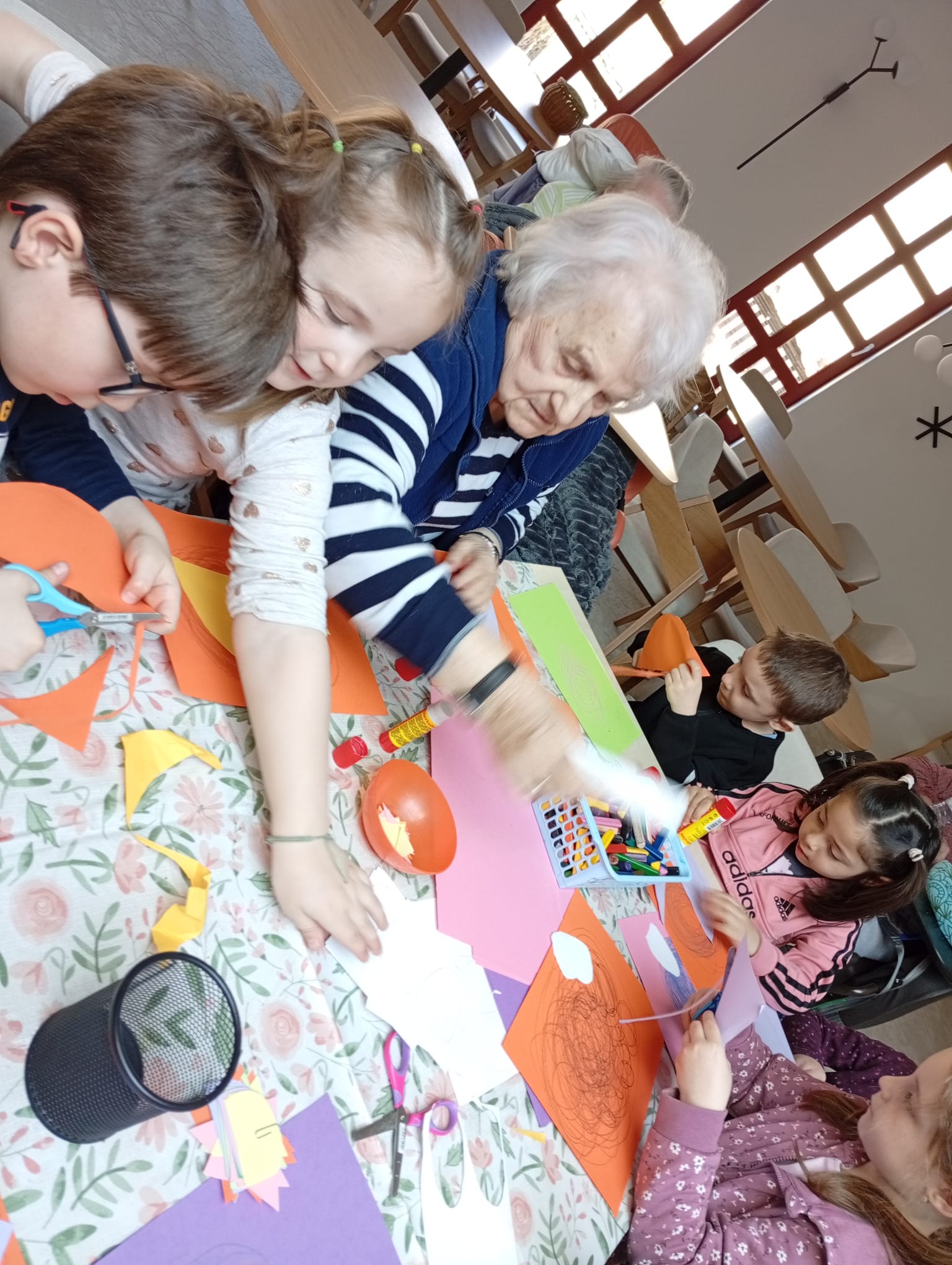 Společný program byl zaměřený na tvoření – klienti i děti se zapojili do výroby jarních dekorací, při které společně lepili papírové ptáčky, posly jara. O kreativitu nebyla nouze! Děti ze školky navíc připravily předem krásné obrázky s jarní tematikou, které nyní zdobí odpočinkovou místnost v 1. patře našeho Domova a přispívají k příjemné atmosféře celého prostoru.