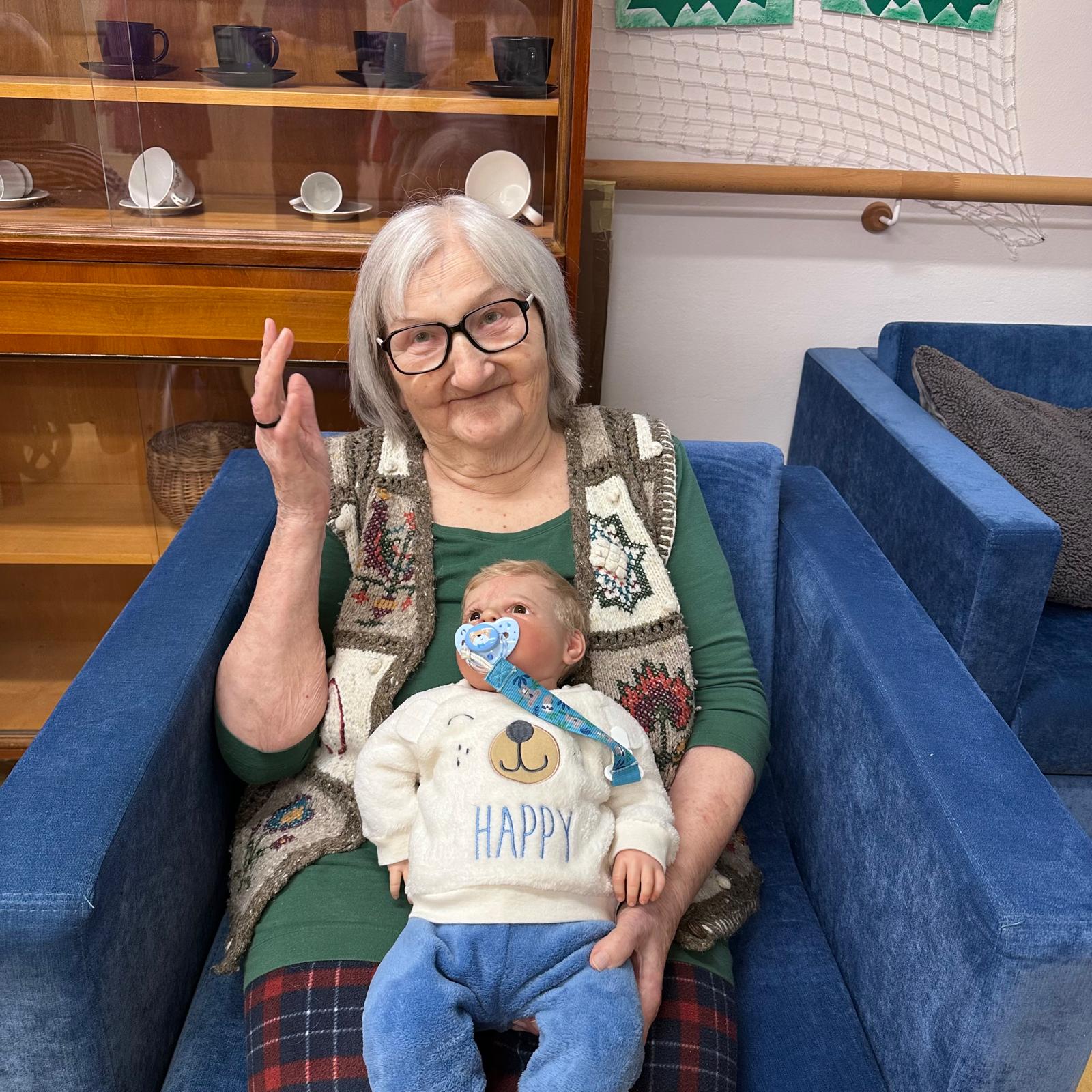 V Seniorcentru Opava pracujeme s touto metodou citlivě a vždy individuálně. Panenka není „hračka“, ale terapeutický nástroj. Nikomu není vnucována – respektujeme osobnost, životní příběh i aktuální naladění každého našeho klienta. Paní Soňa Šustková přistupuje v této terapii k našim seniorům s empatií a laskavostí. Vytváří bezpečný prostor, kde je možné prožít radost, něhu i dojetí bez ostychu. Někdy stačí pár minut s panenkou v náručí a promění se celý den. Úsměv, který nemizí, uvolněné ruce, klidnější dech. To jsou drobné, ale nesmírně cenné momenty, jež potvrzují, že i jednoduché prostředky mohou mít hluboký terapeutický účinek.