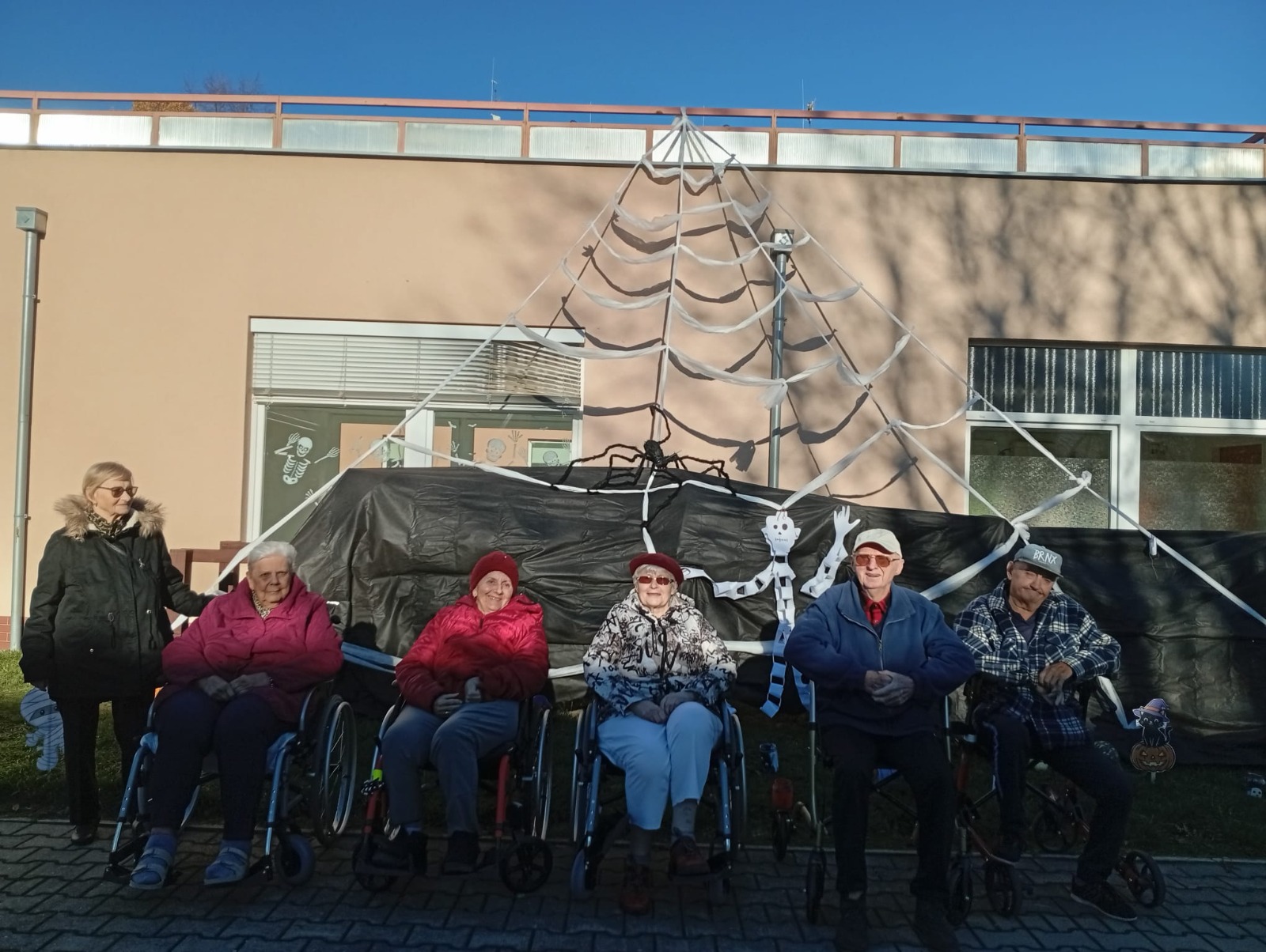 Celá zahrada se proměnila v tajemné místo plné dýní, světýlek, strašidýlek a podzimních dekorací. Na každém kroku na nás čekalo malé překvapení – pavučiny, duchové i svítící lampičky vytvořily kouzelnou atmosféru, která nás všechny nadchla. Klienti si prohlídku velmi užili, obdivovali výzdobu a ocenili nápaditost zdejších výtvorů. Sluníčko nám přálo, a tak nechybělo ani společné povídání a příjemná podzimní nálada.