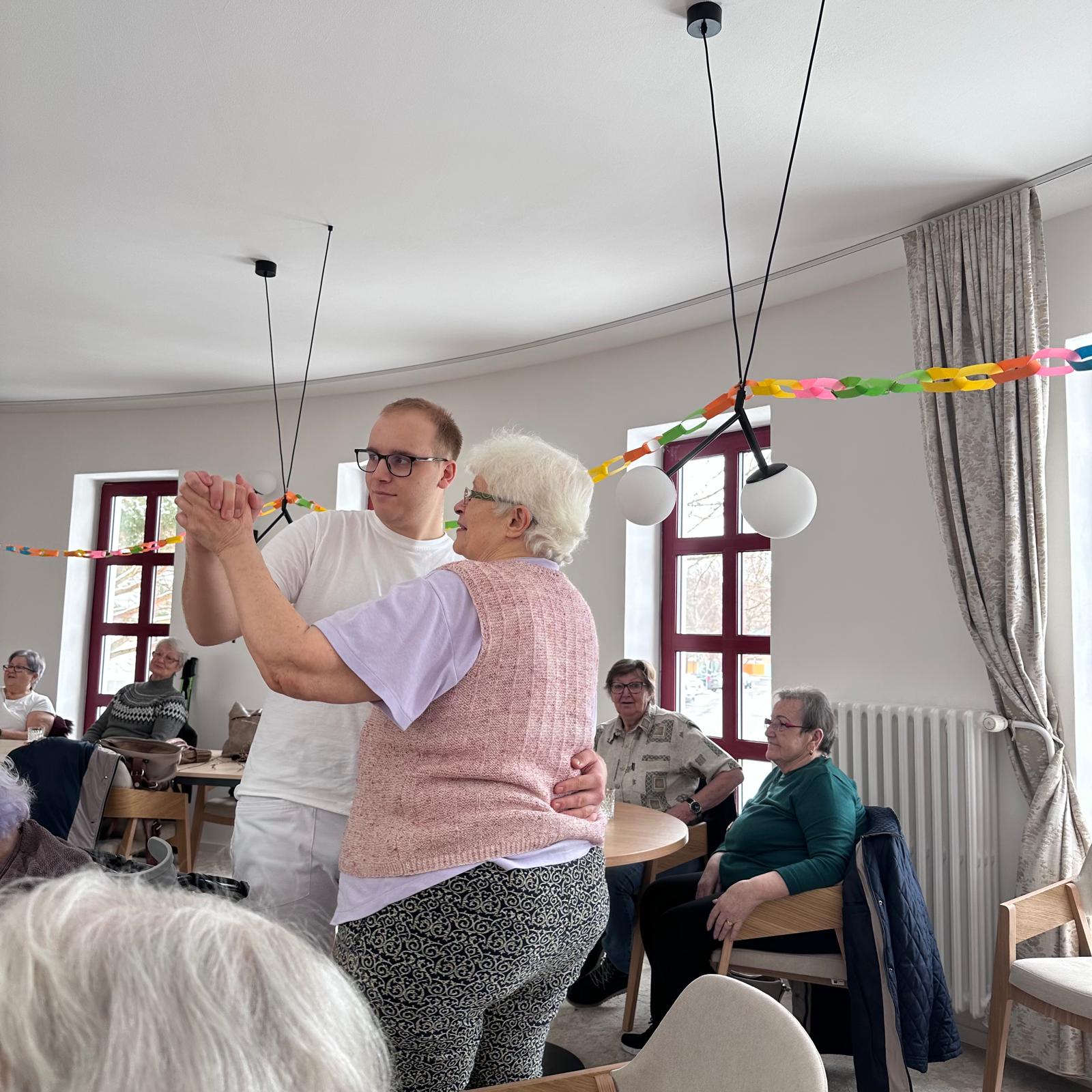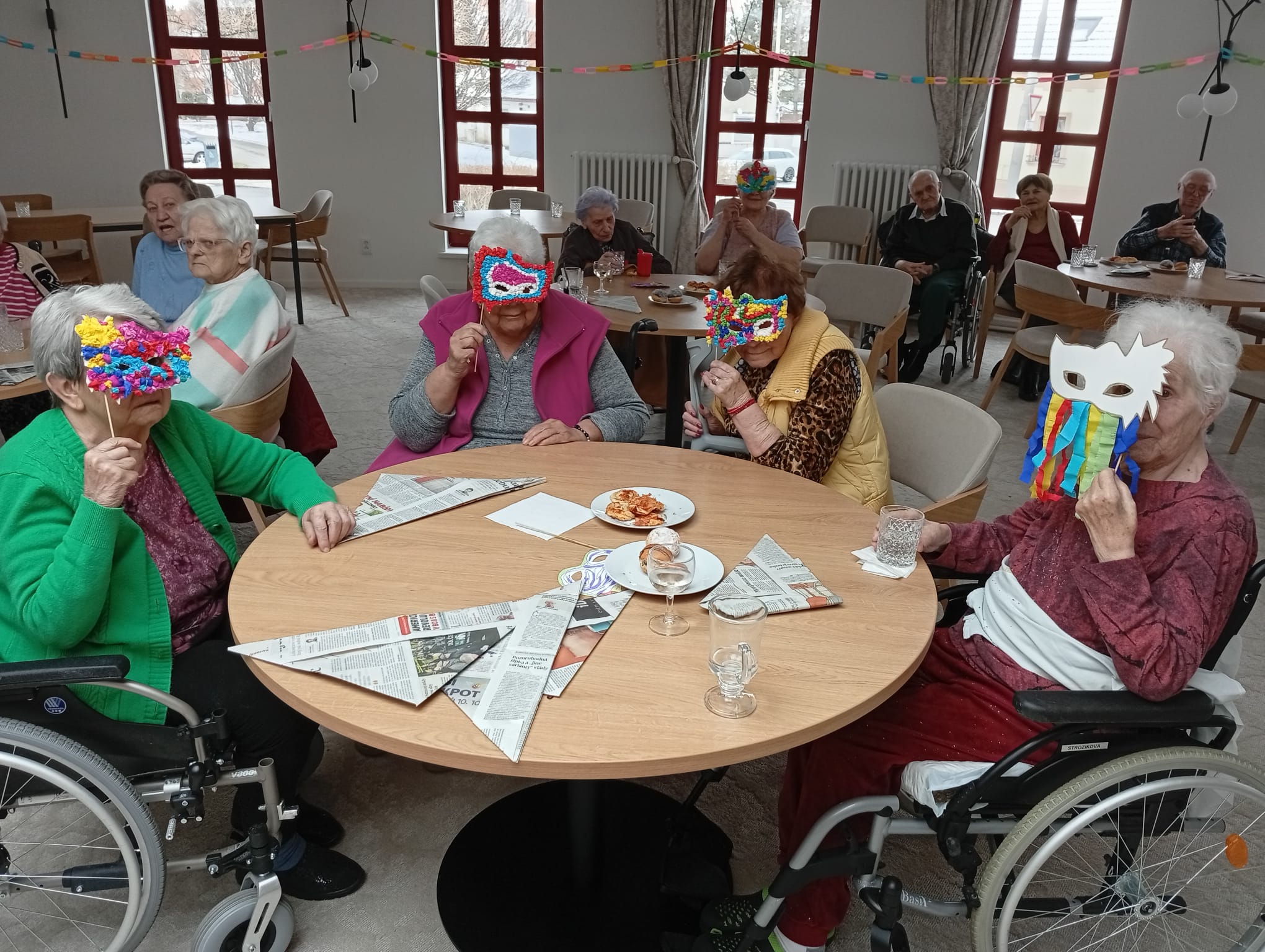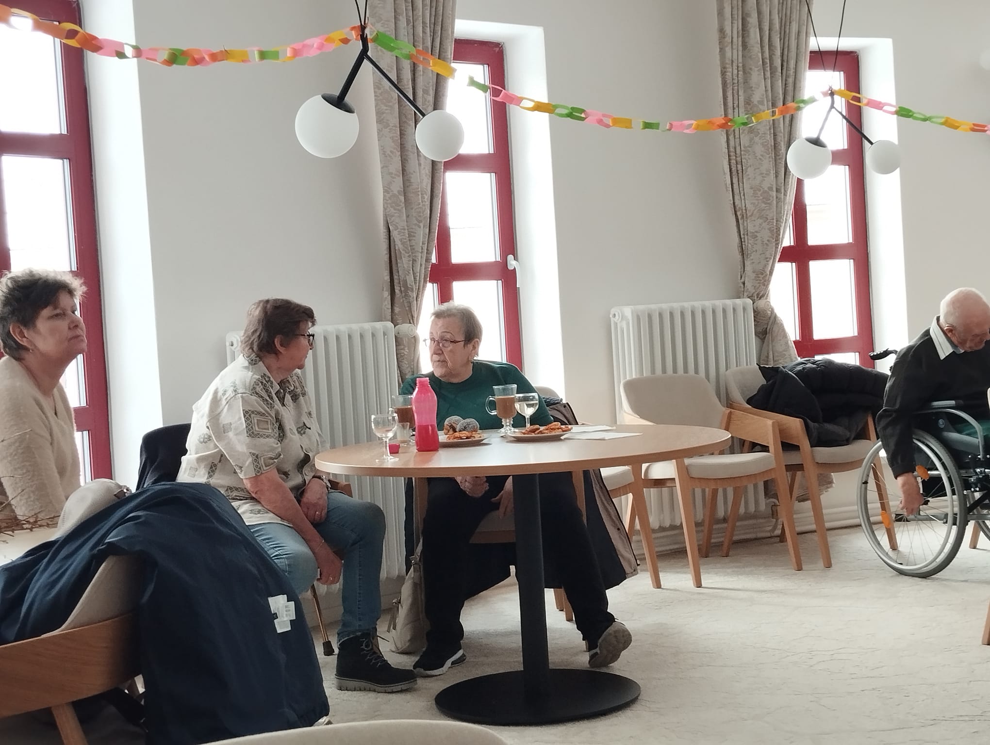 Masopustní posezení nezačalo až samotným programem. Den před akcí se naši klienti pustili do příprav – společně napekli slané šneky, které pak nabídli ostatním hostům. Pečení se tak stalo nejen praktickou přípravou občerstvení, ale také aktivizační činností podporující jemnou motoriku, spolupráci i pocit užitečnosti. „Nejde jen o to něco upéct. Důležité je, že klienti tvoří společně, povídají si, vzpomínají na rodinné recepty a mají radost z výsledku,“ vysvětlila Michaela Pardová, sociální pracovnice během příprav. Masopustní tabuli pak doplnila kuchyň Seniorcentra Opava tradičními koblížky. Vůně sladkého pečiva se linula chodbami a dotvářela autentickou atmosféru svátečního dne.