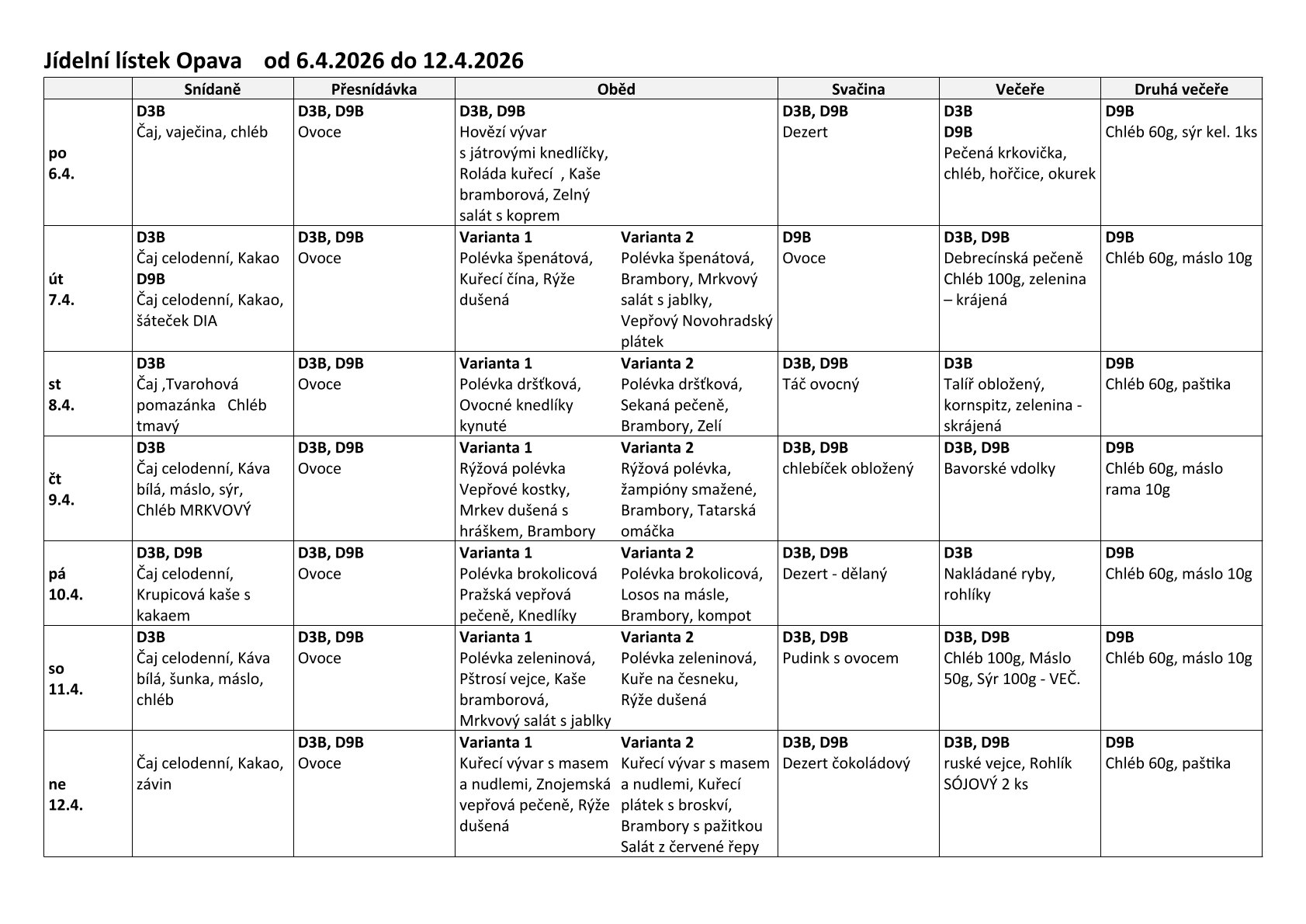 V tomto týdnu v podání kuchyně Seniorcentra Opava