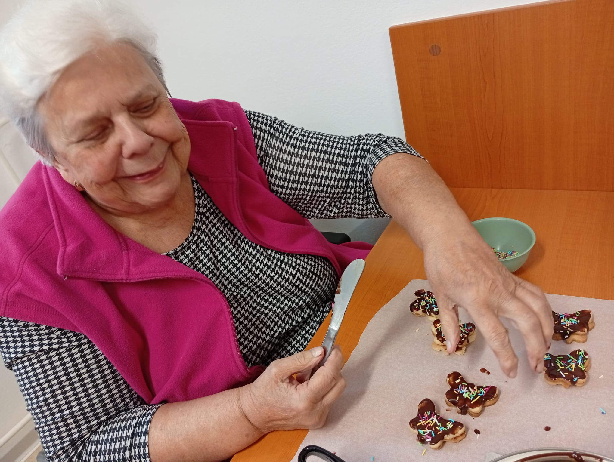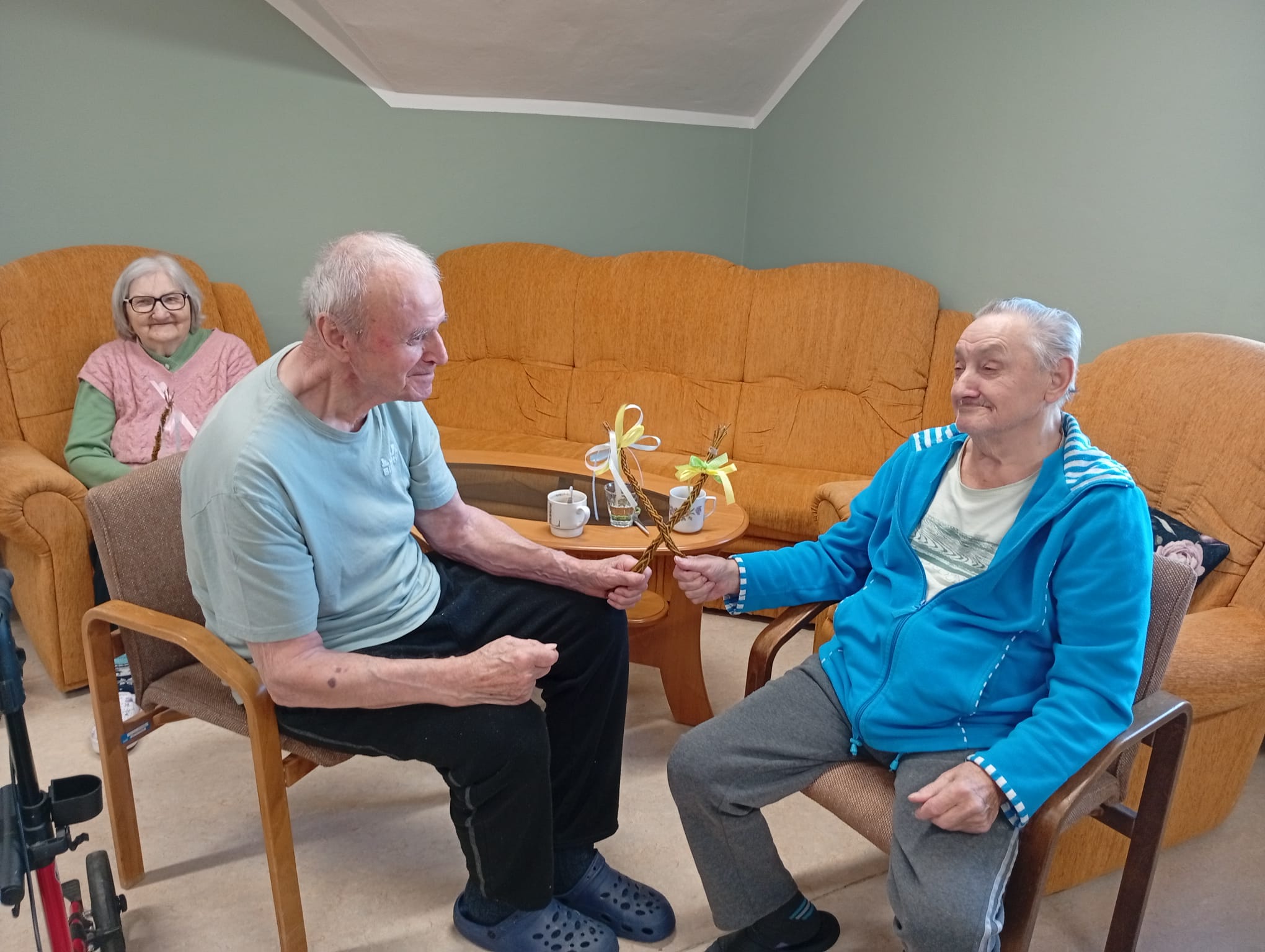 Velikonoční přípravy pokračovaly v kuchyni, kde se linula vůně čerstvě upečeného cukroví. Klienti se v rámci aktivizačních činností s radostí pustili do pečení tradičních dobrot, které nejen potěšily chuťové buňky, ale také přinesly radost ze společně stráveného času. K Velikonocím neodmyslitelně patří pomlázka. Tu si klienti opět mohli vlastnoručně uplést díky návštěvě pana Jaroslava Černého, který do domova zavítal jako každý rok. Jeho trpělivé vedení a sdílení tradice přinesly klientům nejen nové dovednosti, ale i příjemné chvíle plné povídání.