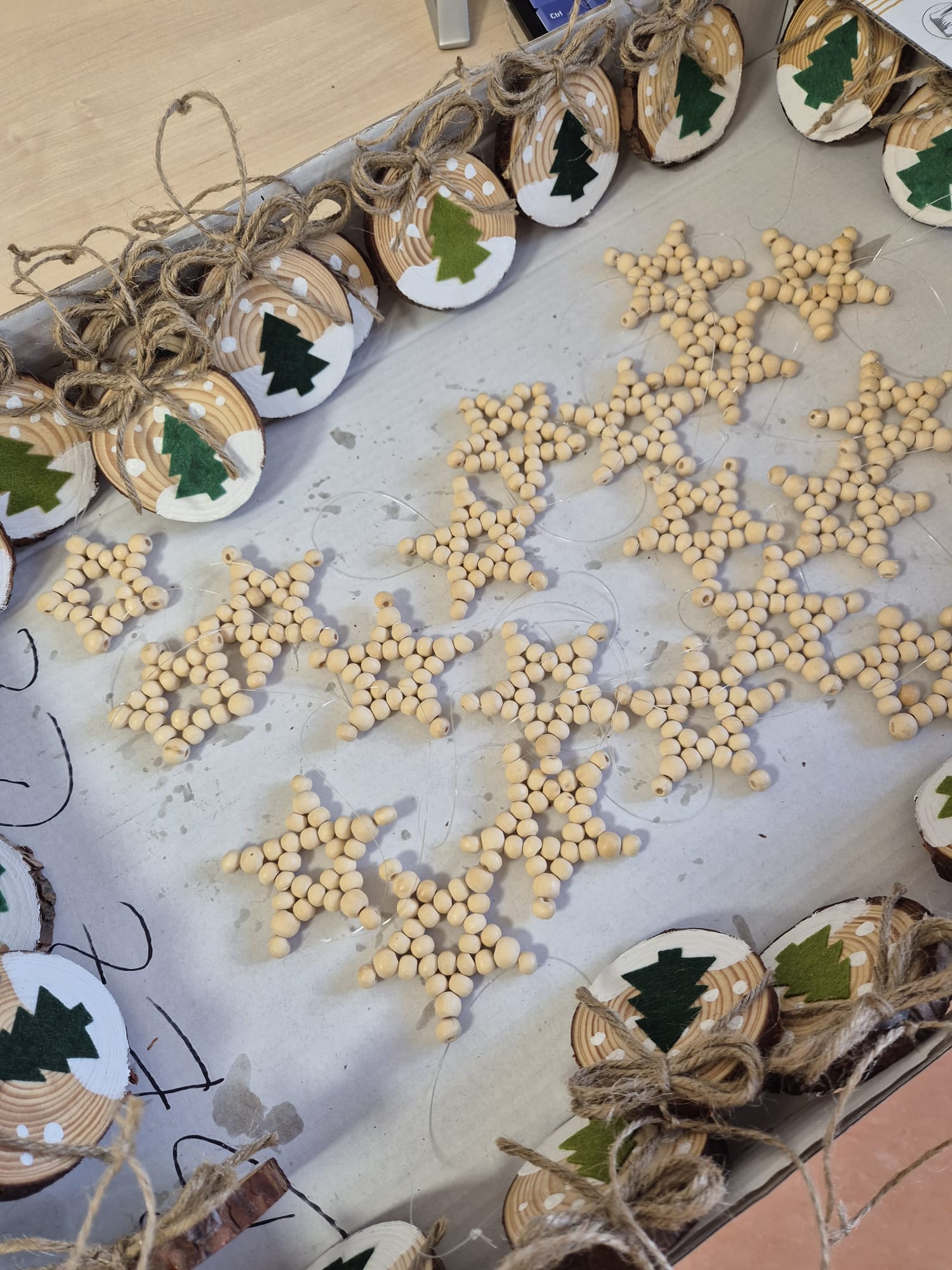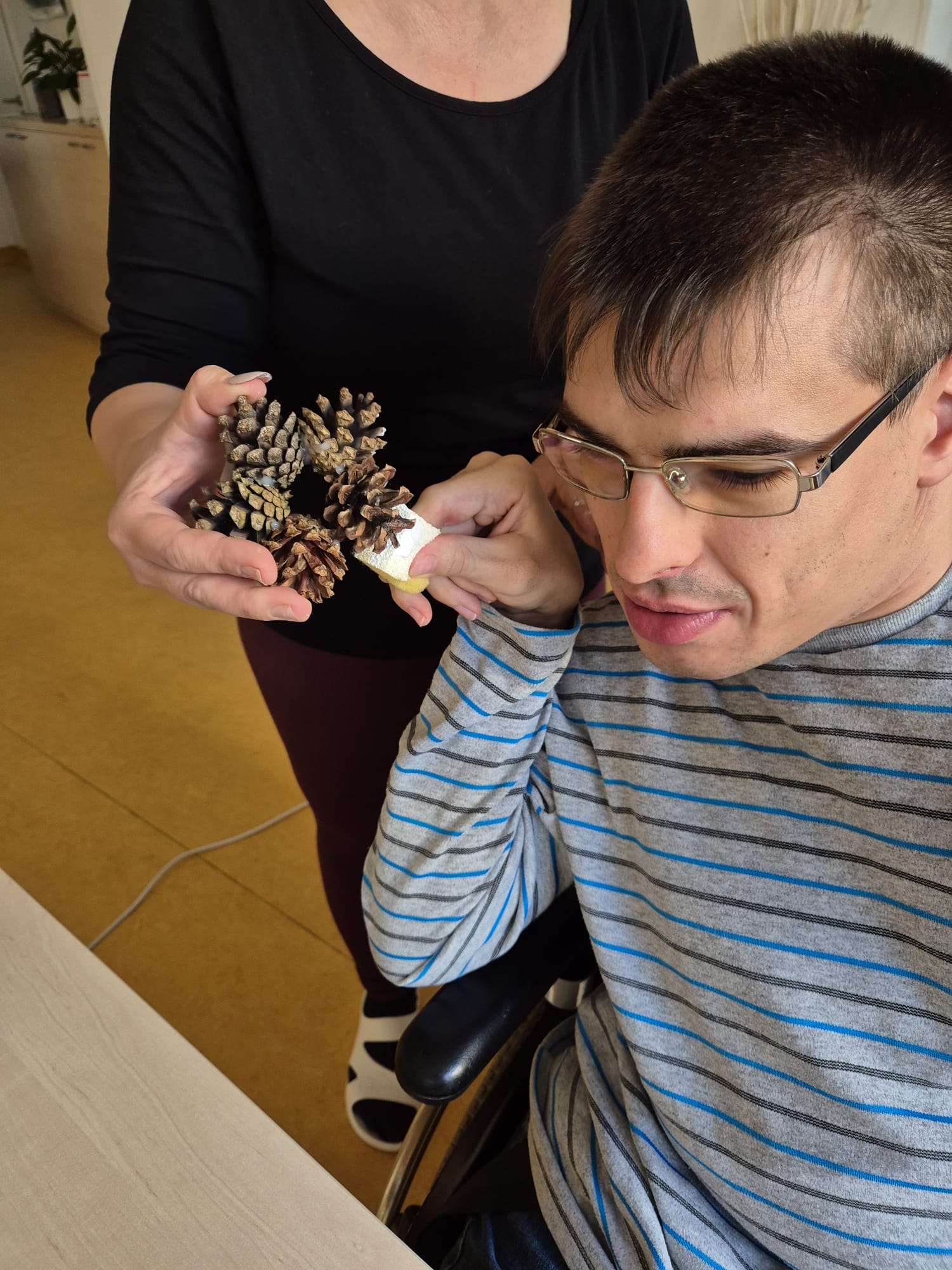 V Seniorcentru Opava zavládla vánoční atmosféra! Na přání Magistrátu města Opavy se klienti a pracovnice Centra denních služeb pustili do tvoření originálních vánočních ozdob z přírodních materiálů, které ozdobí vánoční stromy v centru města. V jejich rukou ožívají šišky, dřevěné výřezy, korálky i jutové provázky, které doplňují barvami, textilem a spoustou tvořivých nápadů.