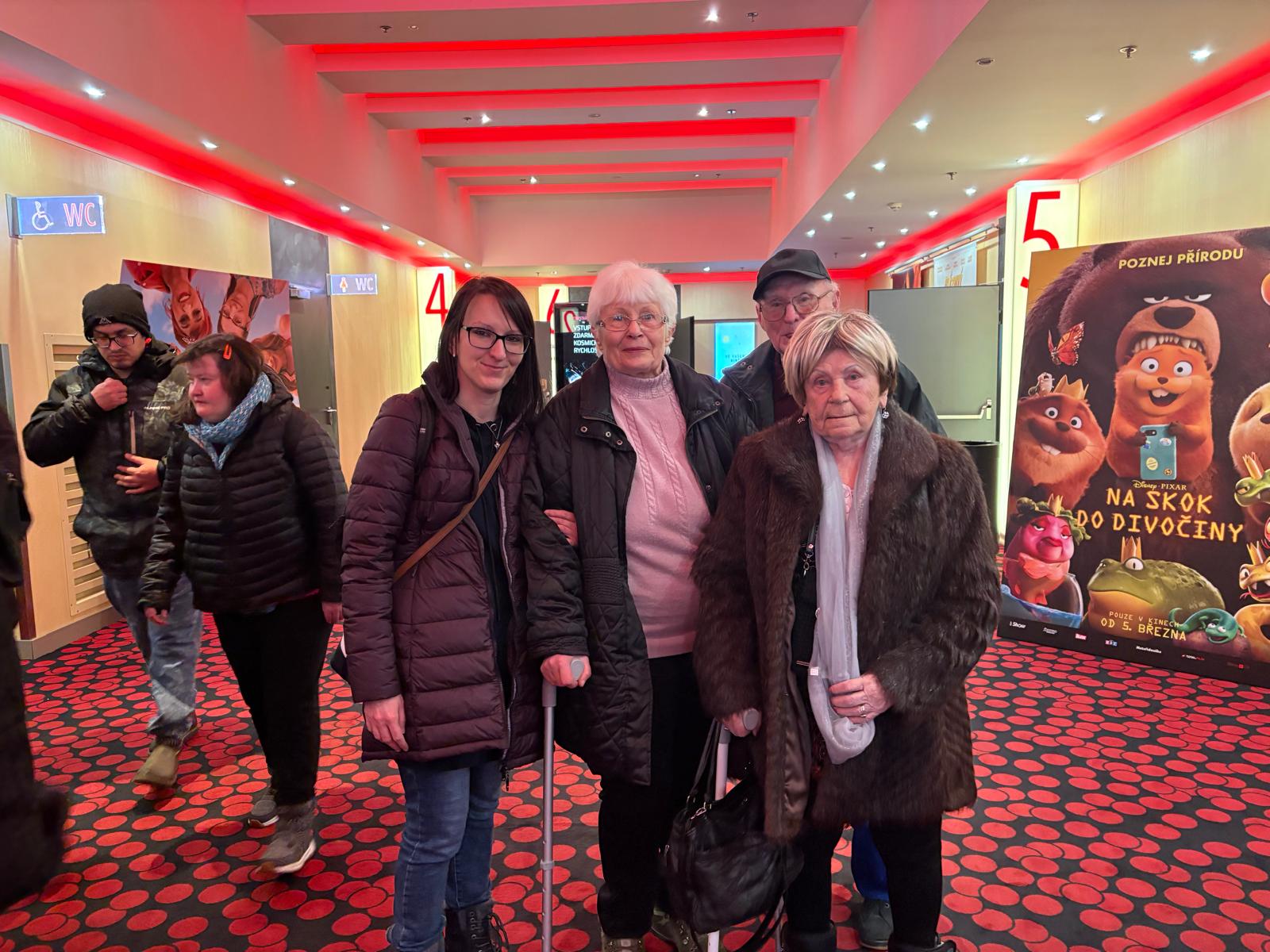 Dopravu nám zajistila služba Senior taxi, díky které se mohli do kina pohodlně a bezpečně přepravit i klienti s omezenou pohyblivostí. Velmi si vážíme toho, že se daří podobné výjezdy realizovat – právě změna prostředí a kulturní zážitky přinášejí našim seniorům radost, nové podněty i témata k rozhovorům. Protože jsme dorazili s časovou rezervou, využili jsme chvíle před začátkem promítání k posezení v místní cukrárně. U kávy a sladké tečky panovala příjemná atmosféra při sdílení vzpomínek na dřívější společné návštěvy kin. Velké poděkování patří také dceři jedné z našich klientek, která nám ochotně pomohla s doprovodem. Takové zapojení rodinných příslušníků velmi vítáme, vždy našim klientům udělá radost.